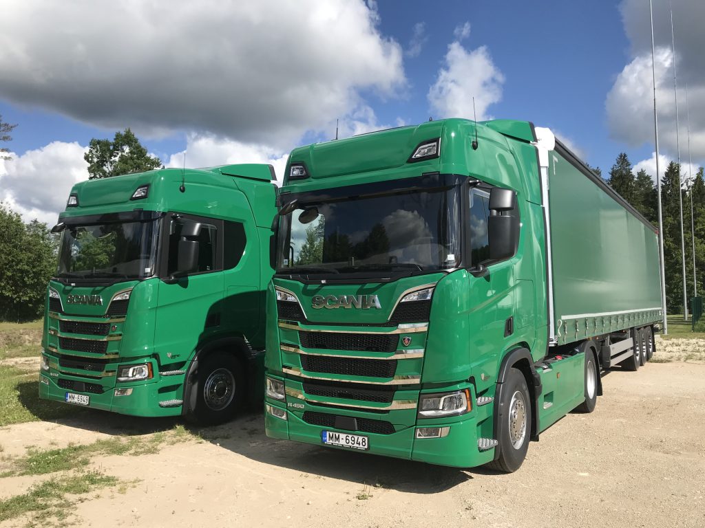 Šobrīd uzņēmumā ir trīs kravas automašīnas, ar kurām ikdienā tiek pārvadātas kravas Baltijas valstu robežās. Divas no automašīnām – ar EURO 3 un EURO 5 emisiju standartiem – pagājušajā nedēļā nomainītas uz jauniem SCANIA R 450 modeļiem ar augstāko – EURO 6 – emisiju standartu. 2019. gadā šis modelis ieguvis balvu kā videi draudzīgākais kravas auto savā klasē (vairāk info šeit). Jaunajām automašīnām ir vairākas būtiskas priekšrocības: